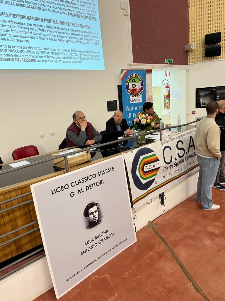 Si è tenuto a Cagliari il 7 ottobre 2024, presso l’Istituto Superiore Liceo Classico G. M. Dettori il Convegno ” Terrorismo e Diritti Umani” splendidamente organizzato dal Segretaio Congiu cui ha partecipato in qualità di relatore il Presidente ADP Mongardini.