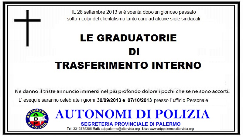 Sono venute a mancare le graduatorie di trasferimento interno alla Questuradi Palermo: ne danno il triste annuncio i pochi che se ne sono accorti.